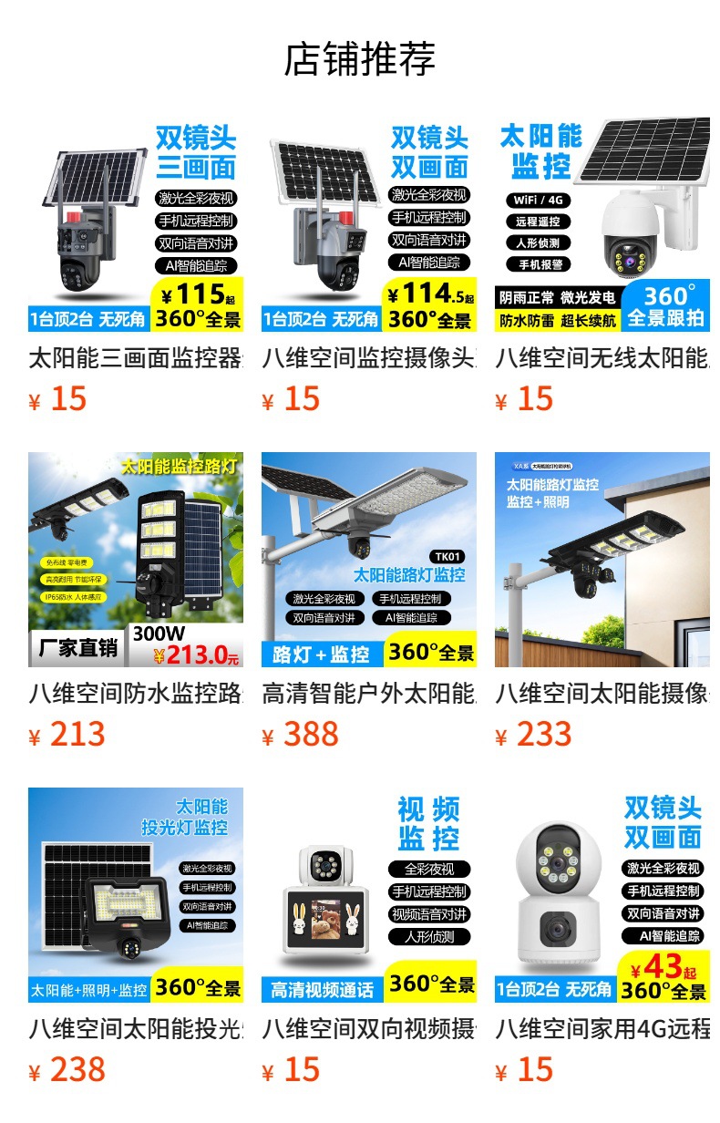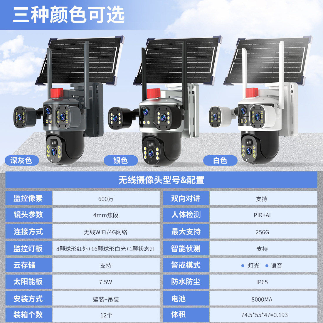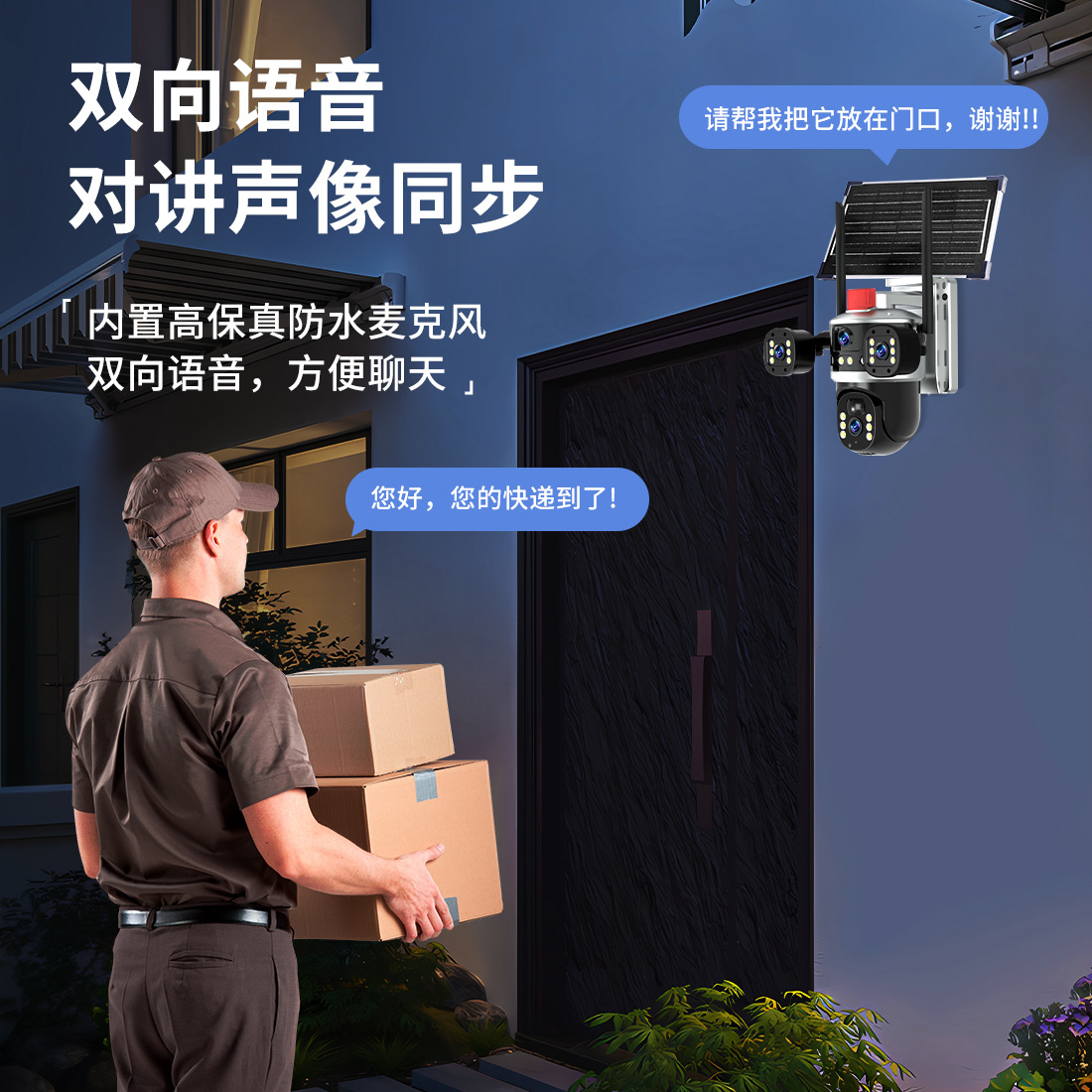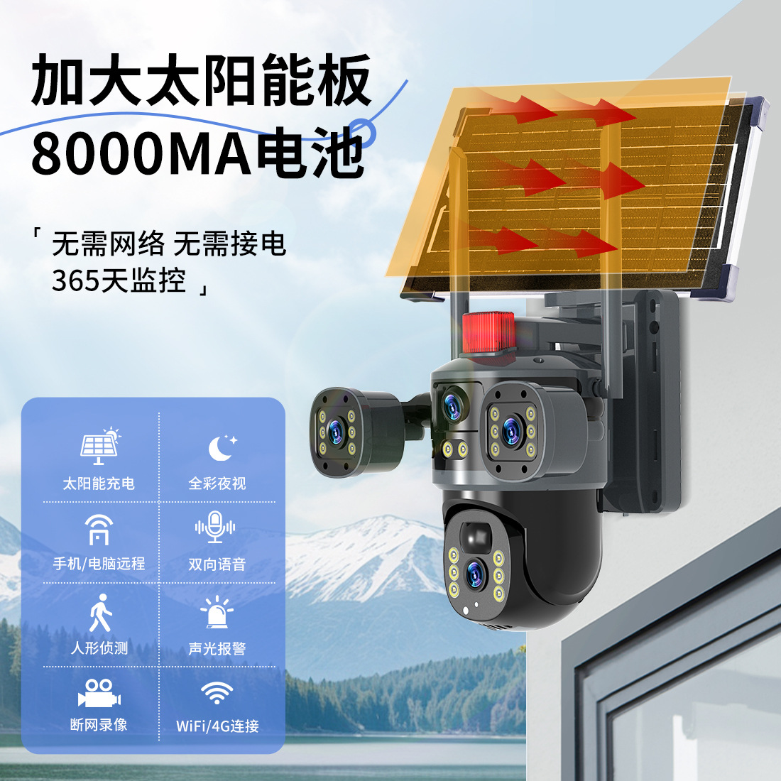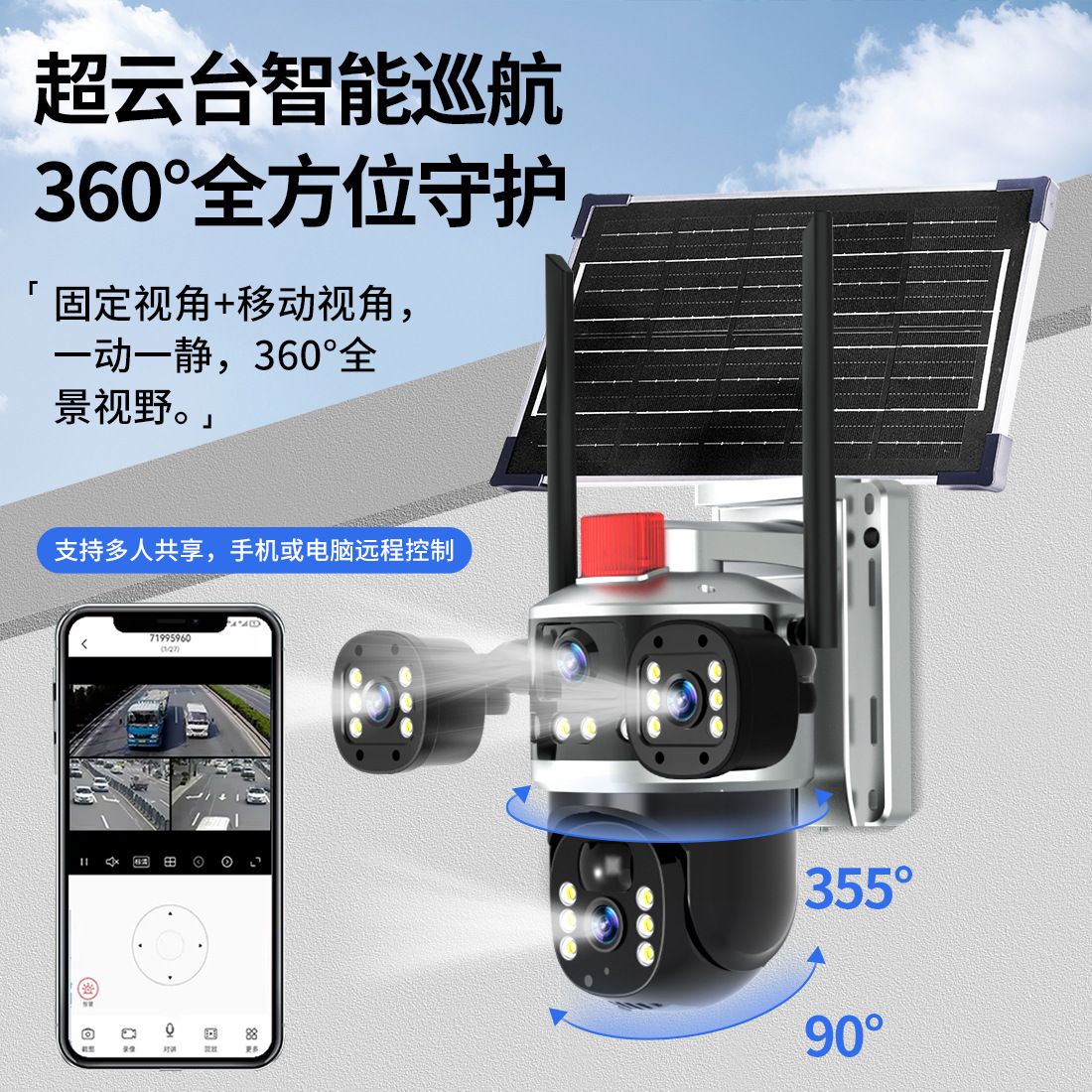 Solar-Powered Three-Eye Monitoring, Three-Lens Camera, High-Definition Remote Intercom, 360-Degree Panoramic View, Mobile Phone Remote Outdoor